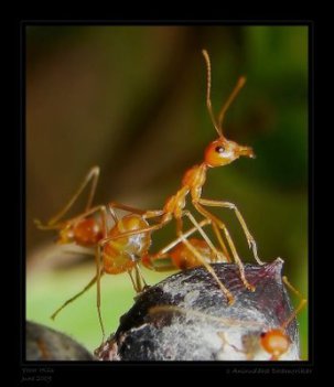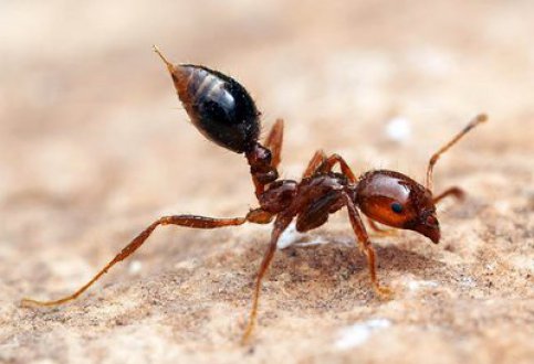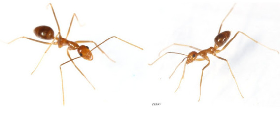 Solenopsis sp. | Fourmilières dans le sol, présentent aux États-Unis. | Trois espèces de fourmis rouges peu connues, importants ravageurs et protectrices des pucerons | Très agressives, nuisances importantes pour les humains. |