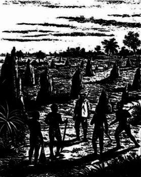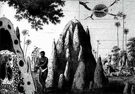 Au niveau historique, les écrits de beaucoup d'expéditions ramènent des observations de grands et beaux champs de riz, de sorgho et de coton entourant des termitières. A l'époque, aucune relation n'avait été faite.
