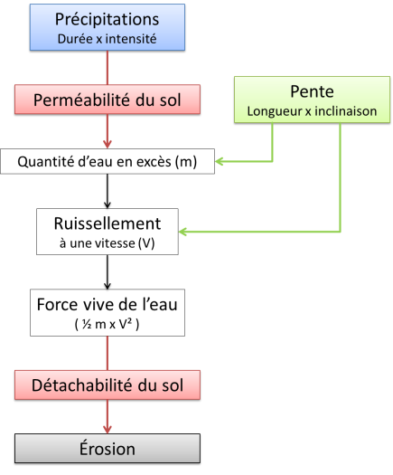 L'érosion est donc le fruit d'un processus commençant par une désagrégation des agrégats à la surface du sol. Elle entraîne la formation d'une croûte structurale puis sédimentaire, communément appelée la battance. Cette croûte réduit l'infiltration de l'eau et conduit à la formation de ruissellement.