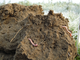 ![]() Photographie : Fissuration en sol argileux. | Les périodes de gel durant l'hiver, ou d'alternance de périodes de sécheresse et des pluies orageuses en été, créent des cycles d'humectation et de dessiccation des sols. Sur un sol contenant au moins 20% d'argiles (type smectite), ces cycles humectation - dessiccation permettent de créer de la fissuration, donc une porosité d'origine climatique, aussi appelée fissurale. Cette fissuration, très souvent visible en surface des sols lors de périodes sèches [cf illustration], conduit également à former des agrégats de type anguleux. |