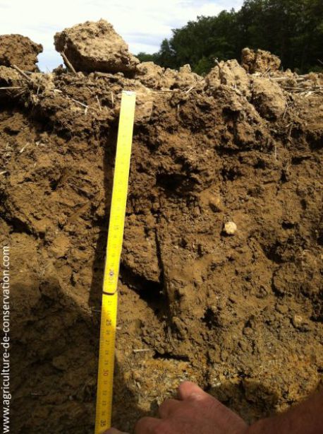 La description d'un sol repose donc sur l'identification des couches et de leur état : compaction, présence de galeries de vers de terre, longueur des racines, discontinuités (notamment semelles de travail[4])... Il existe des méthodes pratiques pour observer son sol efficacement. |