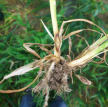 ![]() Base de tige de blé atteinte par le piétin verse - site Internet de la Chambre d'Agriculture de la manche (www.manche.chambagri.fr) | [3] | C'est une maladie cryptogamique des céréales à pailles, et notamment du blé. Les champignons responsables sont Oculimacula yallundae, (Helgardia herpotrichoides, surtout sur blé et orge) et Oculimacula acuformis (H.acuformis, surtout sur blé, orge, triticale et seigle ). Ceux-ci entraînent des brunissement de la gaine à la base des tiges, des taches allongées sur la périphérie, des plaques noires à l'intérieur des gaines, des épis blancs et des verses provoquées par ces lésions. Les dégâts s'observent de façon disséminée sur la parcelle, et entraînent de fortes pertes économiques dues aux baisses de rendement et à la difficulté de récolter en cas de verse. La diffusion du champignon passe par les mêmes vecteurs que le piétin échaudage, mais le piétin verse a une durée de vie et une résistance au gel supérieures, allant jusqu'à 3 ans, ce qui le rend difficile à contrôler par une simple rotation. |