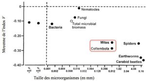 L'abondance des microarthropodes semble alors correspondre à la quantité de matière organique dans les sols. Le non labour tend à rendre les sols plus stable et à favoriser le développement des décomposeurs des sols ( Coleman et al., 2001[6]).
