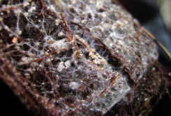 Mycélium (blanc) de champignon ectomycorhizen associé aux racines (brunes) de Picea glauca - Photo André-D. Picard from Wikimedia Commons