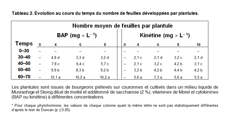 Traits verticaux entre BAP et Kinétine