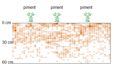 Test d'une variété de piment résistante (Me1-Me3 pyramidé) à la densité de 12 plants/m². Évaluation du potentiel de colonisation racinaire du sol