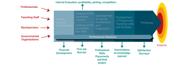 The diagram above shows that relations with professionals and are located at all stages of the process and are continuous in time.