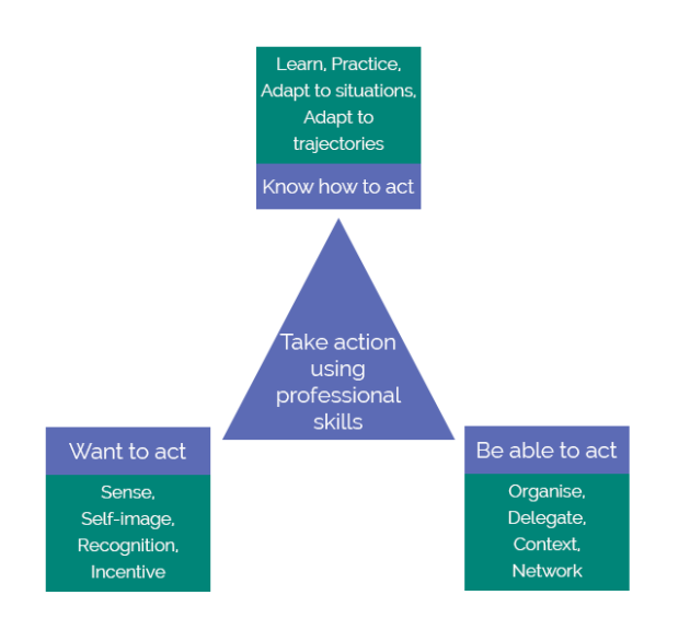 Guy Le Boterf speaks of "know how to act / want to act / be able to act"