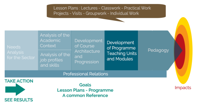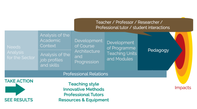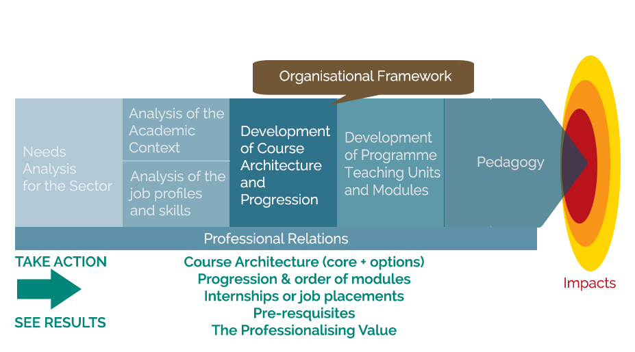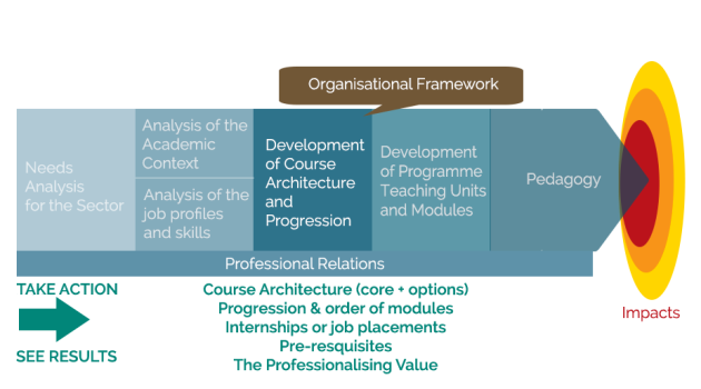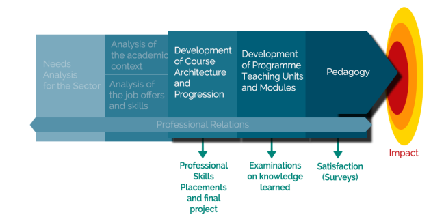 The preceding sequences have shown the work that should be done before opening a training course and notably the links to set up with the professionals. This will ensure the pertinence of the course content which will lead to operational professionals entering the job market.