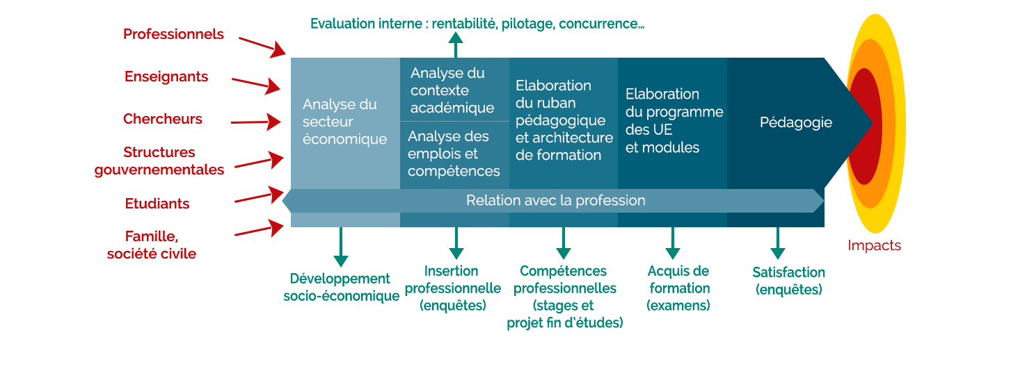Vous allez découvrir l'intérêt de cette approche pour construire ou rénover une formation, et les grandes étapes qui peuvent être suivies pour qu'une formation soit adaptée aux besoins du marché de l'emploi. Si ces démarches et outils ont été assez développés dans le cadre de la formation continue ou la formation technique et professionnelle, elles restent rares pour ce qui concerne l’enseignement supérieur, dont les acteurs se questionnent cependant aujourd’hui de plus en plus sur son rôle dans la professionnalisation des étudiants.