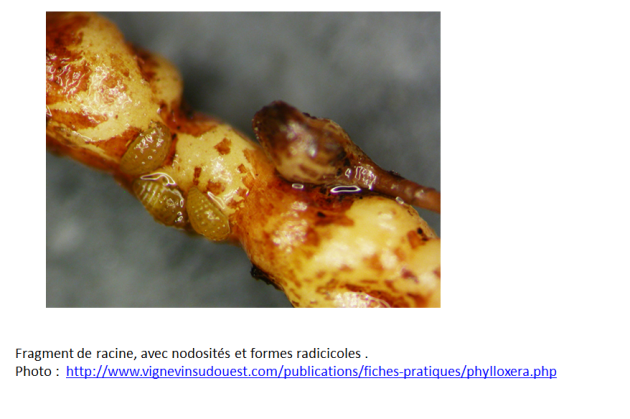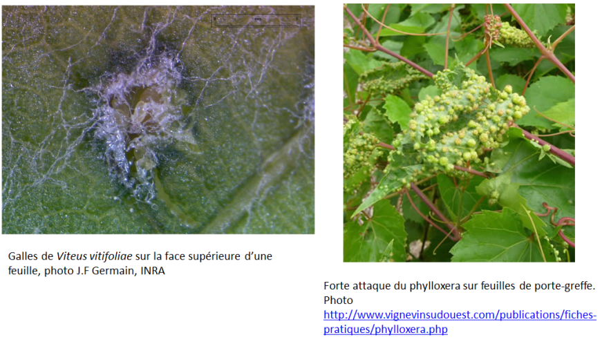 Il existe une fiche pratique concernant le phylloxera à l'adresse, http://www.vignevin-sudouest.com/publications/fiches-pratiques/phylloxera.php, on peut également consulter la fiche OEPP en français https://www.eppo.int/QUARANTINE/insects/Viteus_vitifoliae/F-vitevi.pdf et des photos sont disponibles dans EPPO Global Database (code EPPO VITEVI).