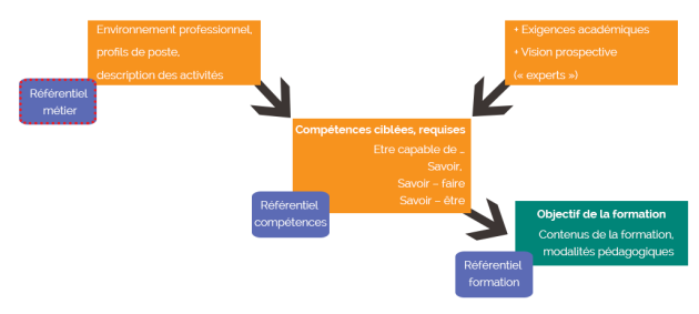 A noter que les référentiels métiers existent déjà dans de nombreux pays. Sauf cas particulier où il s'agit de créer un métier totalement nouveau, on s'attachera alors plutôt à identifier, dans le pays ou dans des contextes proches, les référentiels métiers qui concernent le secteur et les métiers envisagés, et à travailler sur ces référentiels en concertation pour les adapter aux situations et besoins locaux.
