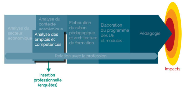 A partir de la connaissance des emplois et métiers acquise à l'étape analyse du secteur économique, il s'agit pour chaque niveau de qualification de décrire plus précisément les emplois et les compétences associées, que le diplômé doit faire acquérir.
