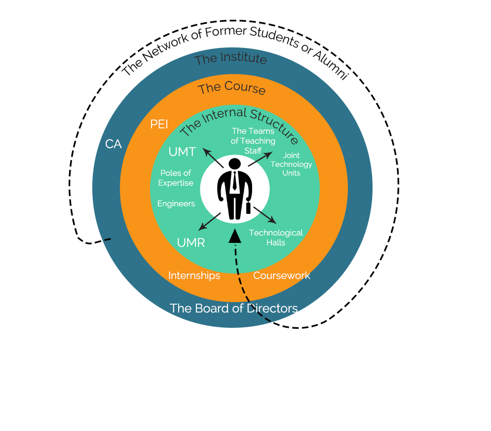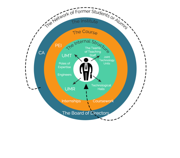 Here, we use The National Institute of Higher Education in Agricultural Sciences, Montpellier SupAgro, France as an example. Some means of interaction do not figure in this model as there are so many interactions possible.